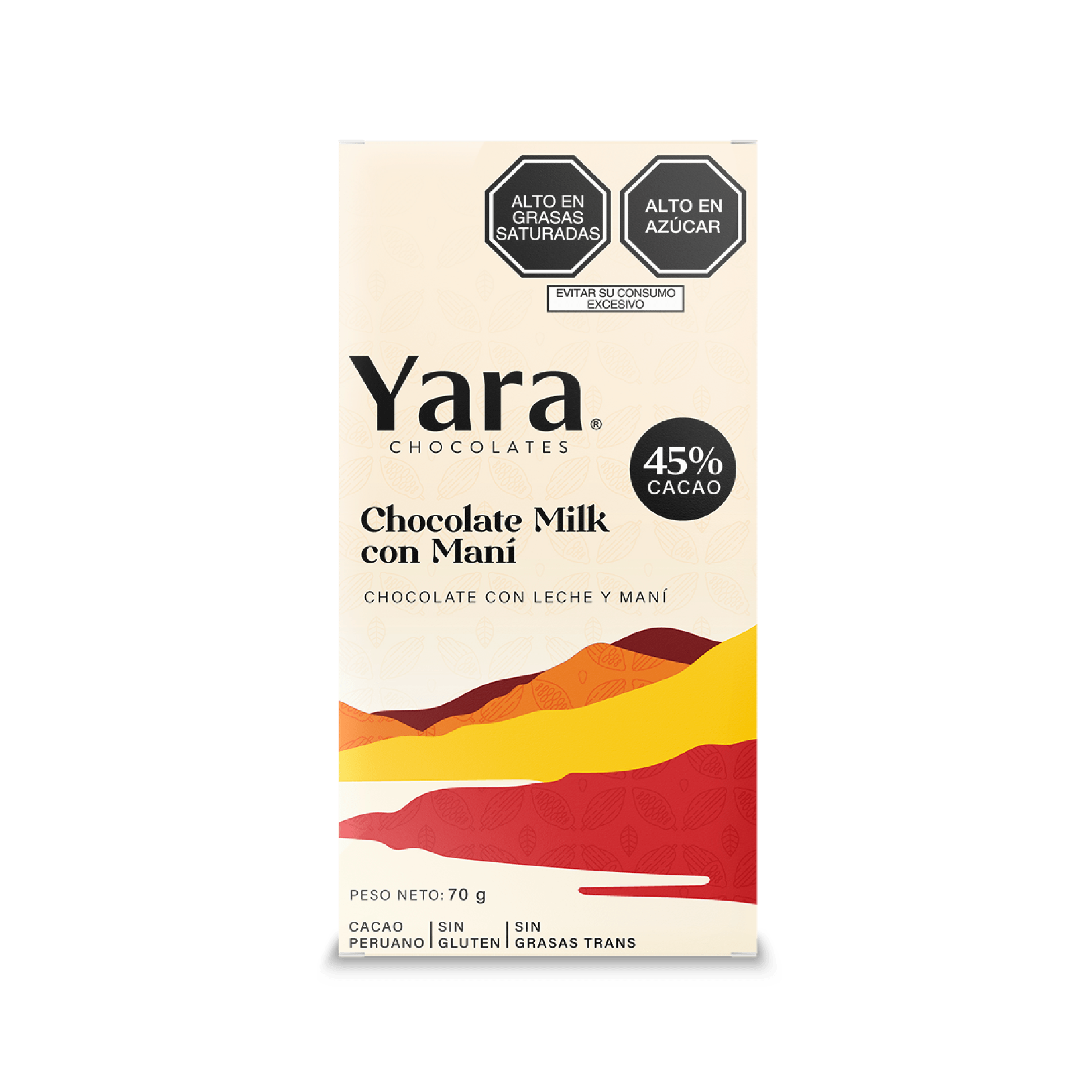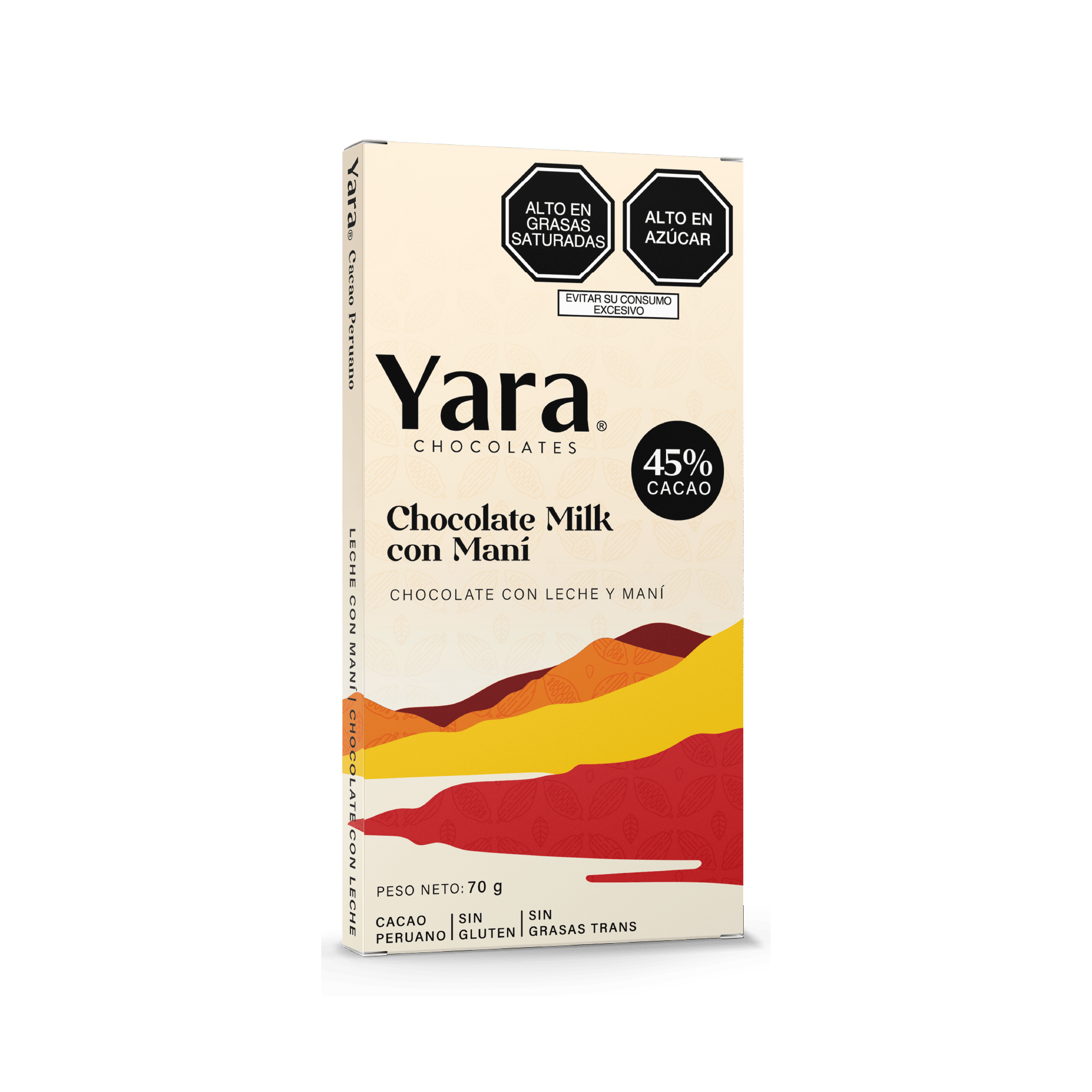 Tableta de delicioso chocolate con Milk con Maní al 45% de Cacao Fino de aroma de las mejores zonas cacaoteras del Perú.