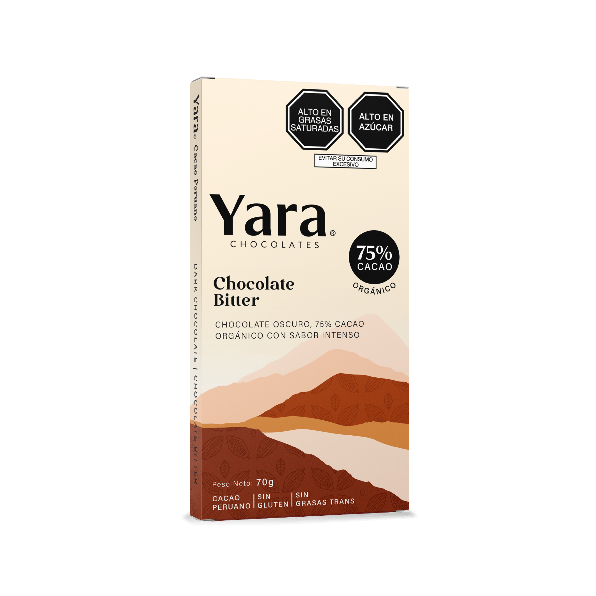 YARA DARK CHOCOLATE BITTER (70 gr.) AL 75%. Bitter Chocolate contiene 75% de cacao orgánico peruano con sabor intenso a cacao. Chocolate Bitter, Bean to Bar hecho con cacao fino de aroma, cosechado en las mejores zonas cacaoteras del Perú.